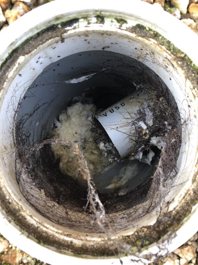 雨水桝に繋がっている排水管の隙間から植物の根が入り混んでいます・・・その根が汚物が流れていくのを邪魔し詰まってようですね。 下水詰まりで多い原因になります。 お客様に状況をご説明し、早速作業していきます。